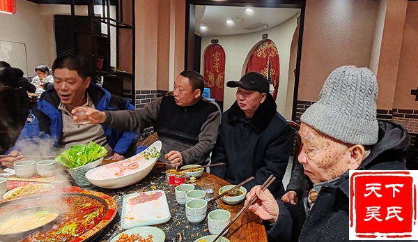 天下吴氏网讯(吴陶勇重庆丰都报道)1月 28日,由重庆丰都吴氏文促会组织的茶话会在鲜香余火锅店如期举办,应邀参加的代表有,天下吴氏网丰都工作站站长、丰都吴氏文促会会长吴书民,秘书长吴培荣,副会长吴静波,吴世明,吴陶勇。还有吴宗怀,吴财,吴陶强。