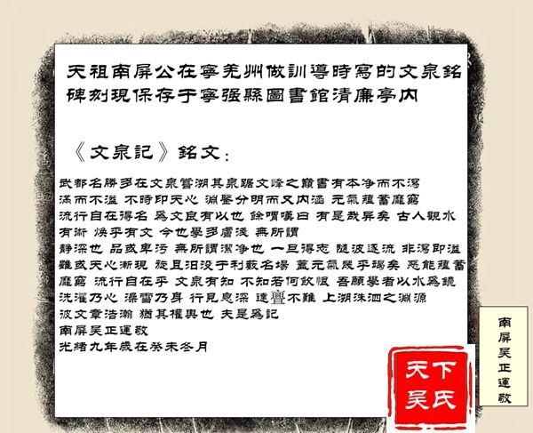 天祖南屏公在宁羌州做训导时写的文泉铭