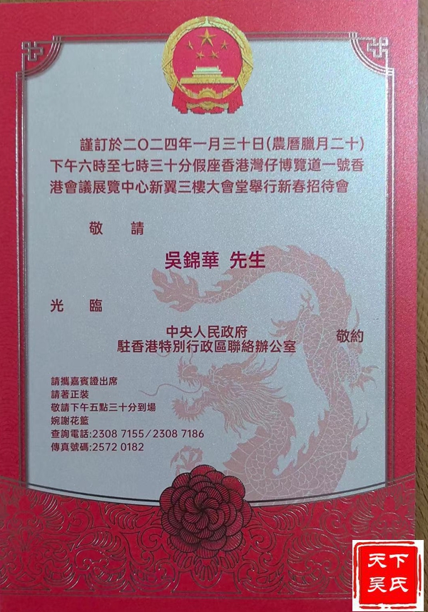 太平坤士吴锦华、吴炎逵主席,香港太平绅士、永遠荣譽會長吴錦华出席了这次新春团拜会。