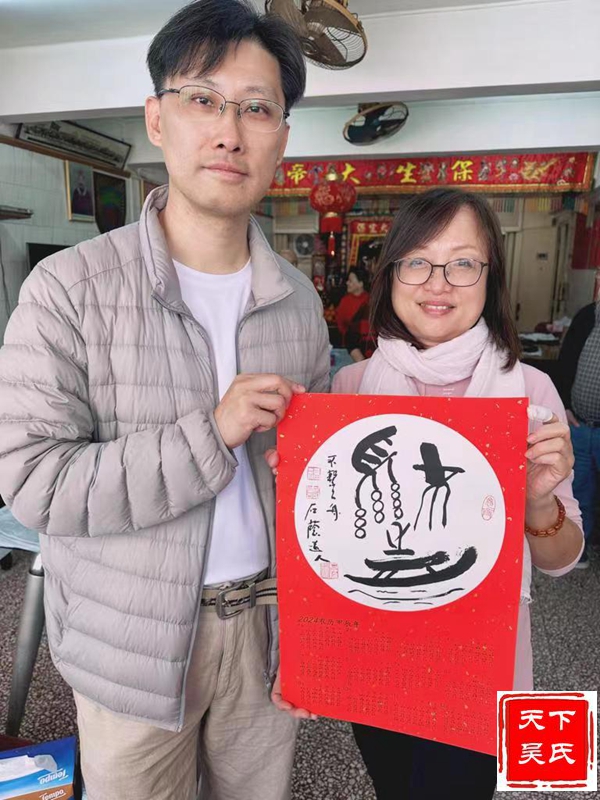 左1吴鹏副主席、左2香港太平坤士吴锦华、左3吴炎逵主席、右1吴国荣副主席、右2吴桂宣总务