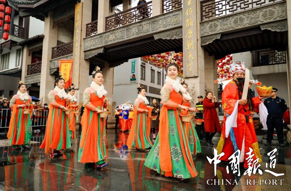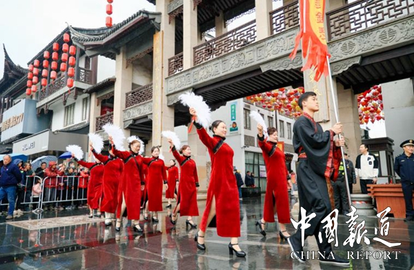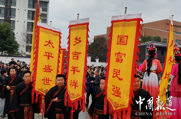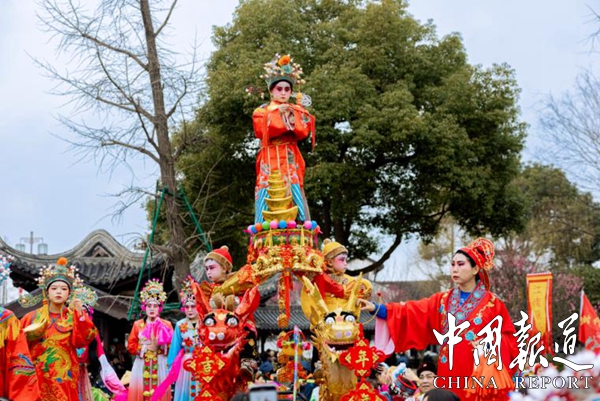 中国报道讯(吴蜀丰通讯员吴焕宰 吴伟根)2月18日,大年初九,泰伯庙会在梅里古镇热闹开场,2024吴文化发展大会系列活动同步发布,电影《泰伯》举行点映。