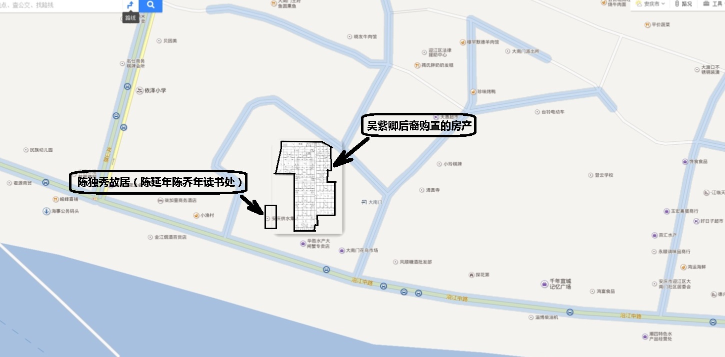 据称,陈独秀在安庆有五处故居,一说是三处故居,目前南水关的房子“陈家大洋房”,即“陈延年陈乔年读书处”,是仅存的一处。另外的“后营十八家”和宣家花园的住处,因为众所周知的历史原因,早已被开发拆除。以“陈延年、陈乔年读书处”的名义保护下来的房子,也缩水一半,且长年失修,破烂不堪。