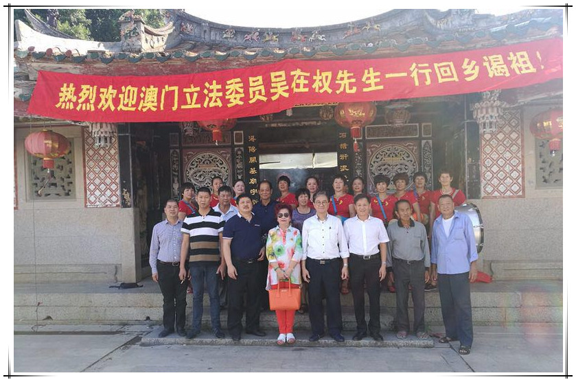 今天下午澳门吴在权宗贤携夫人,到同安石浔村吴氏宗祠祖厝祭祖。宗亲们闻讯后,敲锣打鼓、鸣放鞭炮、热情欢迎吴在权伉俪回乡祭祖。