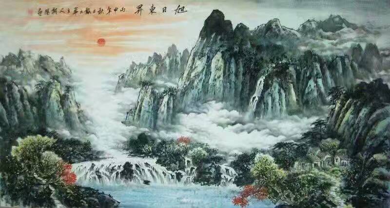 水墨风水画《旭日东升》(刚刚完成的作品)尺寸;大六尺!