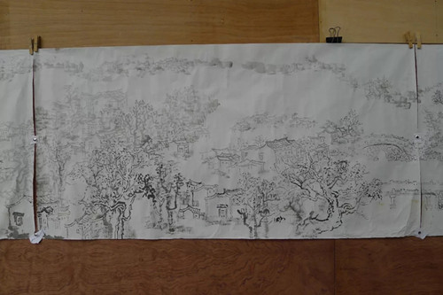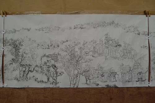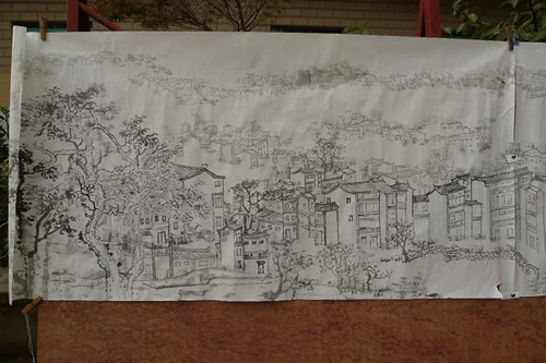 武进画家创作12米长卷画,遥观古村宣庄跃然纸上