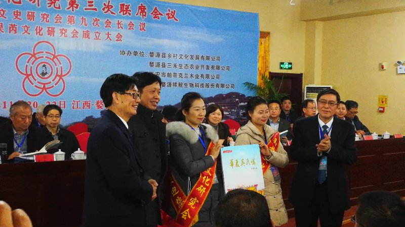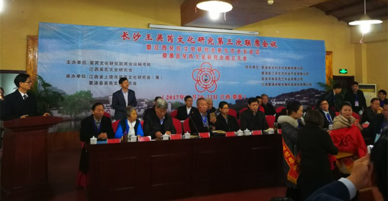 《上饶日报》记者 吴丹2017年11月21日江西婺源报道:我国第一部系统报道海内外吴文化活动的经典文集《华夏吴氏情》今日在中国最美乡村江西婺源举行首发式。参加首发式的宗亲嘉宾有江西省人大常委会上饶地区联络处主任吴怀亮,中共婺源县委副书记、县长吴云飞,婺源县政协主席汪春萍,上饶市政协文史委员会主任艾涛,婺源县人大副主任汪立新、中共婺源县委宣传部副部长詹荣均和各地文史专家吴恩培、吴永敏、吴兴勇、吴超来、吴大行和京、沪、苏、浙、赣、鄂、豫、皖、黔、鲁、闽共20余省参加“长沙王吴芮文化研究第三次联席会议”的宗亲代表约200人。首发式由江西吴氏文史研究会会长吴广凡主持。《中国农民报》湖南记者站站长吴增魁,介绍了本书的内容和发行的意义,然后由艾涛主任和吴增魁站长揭牌。