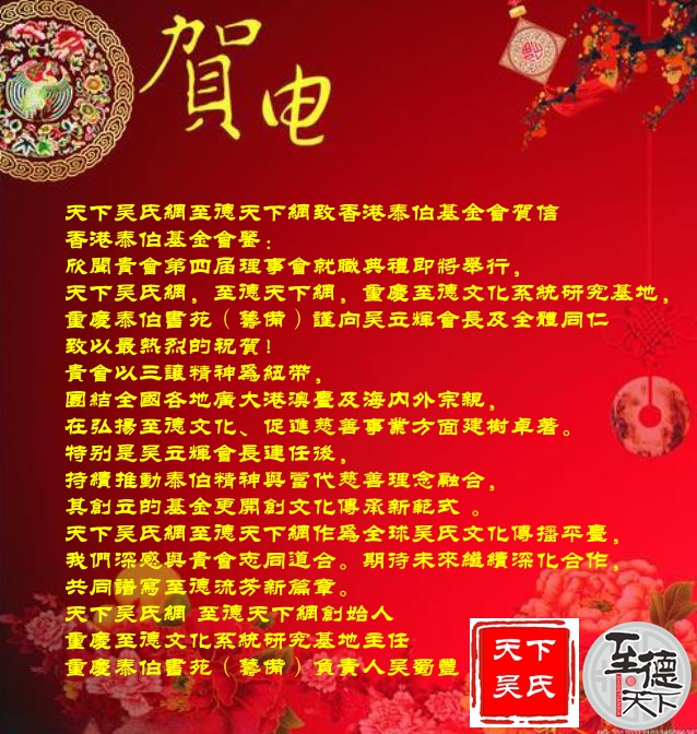 吴氏文化正能量,至德精神在弘扬。开拓进取创辉煌,谱写时代新篇章。