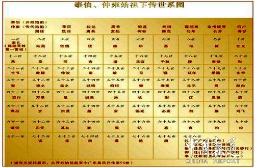 湘中吴姓自宋代(1260年)由木兜公携族弟木裕公由赣迁湘,木字派至兴字派均同,兴字派以下各宗自修族谱,自立字派。新化县分支字派为:(21世纪以来已到了“成”字辈,泰伯第103世)