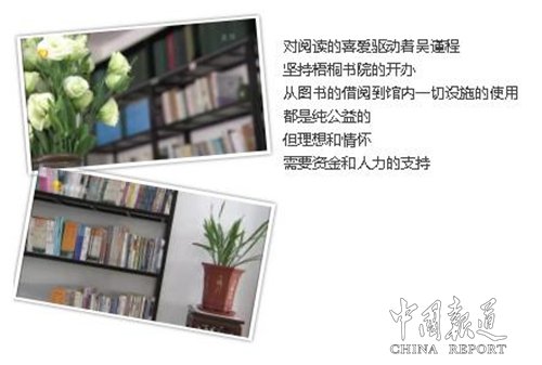 吴谨程和妻子都是文学爱好者从事文学创作已有三十多年,从求学到工作他们一直保持着阅读写作的习惯买书、藏书成为爱好,三十多年的积累下夫妻二人希望将自己的藏书分享给更多的人这么多年来,我一直保持阅读的习惯。阅读,可以说是我人生最大的爱好之一。人嘛,物质生活是一个层面,精神生活又是一个层面,这两者缺一不可,这不仅仅对我个人,而且对于其他人、一个乡镇,一座城市,文化是必不可少的东西。对阅读的喜爱驱动着吴谨程,坚持梧桐书院的开办从图书的借阅到馆内一切设施的使用。