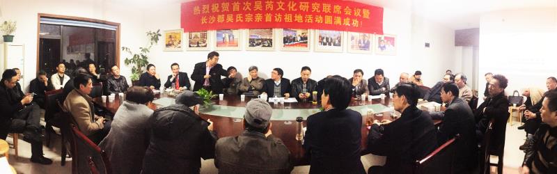 2013年笔者发起的湖南吴文化交流协会尚在筹备阶段时,即提出了对吴氏长沙王和吴芮文化进行专项研究,2014年在协会下设了吴芮文化研究中心,2017年10月成立的湖南至德文化委员会也下设了吴芮文化研究中心;江西省及余干县吴文化研究会等团体,也积极推进了此项研究,余干成立了吴芮文化研究会,江西文化研究会成立了吴芮文化研究室。2015年10月,笔者促成湘赣两省首次关于此项研究的合作,成立了“吴芮文化研究联席会议”,由有关团体负责人吴广凡、吴夫敏等任顾问,秘书处设长沙市,笔者任总联络员(召集人);并确定联席会议一般每年一次,每次由承办地牵头者担任会议主席、负责处理会务等相关事宜,逐步扩大研究队伍和交流地域。2016年3月底,笔者又在长沙市自费组织了首届联席会议和长沙郡吴氏代表首赴祖地考察活动,参访、拜谒了贾谊故居、吴芮首葬处、第五代长沙王吴著墓等,相关知名研究人士吴恩培、吴超来、吴兴勇、吴首明、吴进华、吴忠强、吴瑞贤、吴良生、吴德明、吴湘波、吴启文、吴建忠、吴长宣、吴发生、吴宏、吴修治、吴同鳌、吴文超、吴贤雕、吴安定、吴治礼、吴春华、吴克平、吴光比、吴振国、吴仁清、吴有华、吴忠、吴建华、吴伟、吴次林、吴俊武、吴菊英和吴芮故里、葬地及吴氏长沙国、衡山国古都邾城等八省代表共60余人出席会议;吴进华代表贵州至德吴氏组织筹委会主动申领了第二届会议主办权。2016年10月,第二届吴芮文化研究联席会议在贵州至德文化研究中心成立大会同日成功举行,十八省代表近300人出席会议,会上发行了《吴芮文化文集》(首卷),吴芮故乡、墓陵所在地----江西文化研究会申领了第三届会议(婺源)主办权。2017年11月,第三届吴芮文化研究联席会议亦在婺源吴芮文化研究会成立大会同日成功举行,二十一省代表共300余人出席会议,会上发行了《吴芮文化文集》(第二卷),并首次组织全国吴氏代表在吴芮墓前进行了拜祭,浙江吴文化研究会申领了第四届会议(衢州)主办权,并议定第四届会议2019年在吴芮故里余干举行。