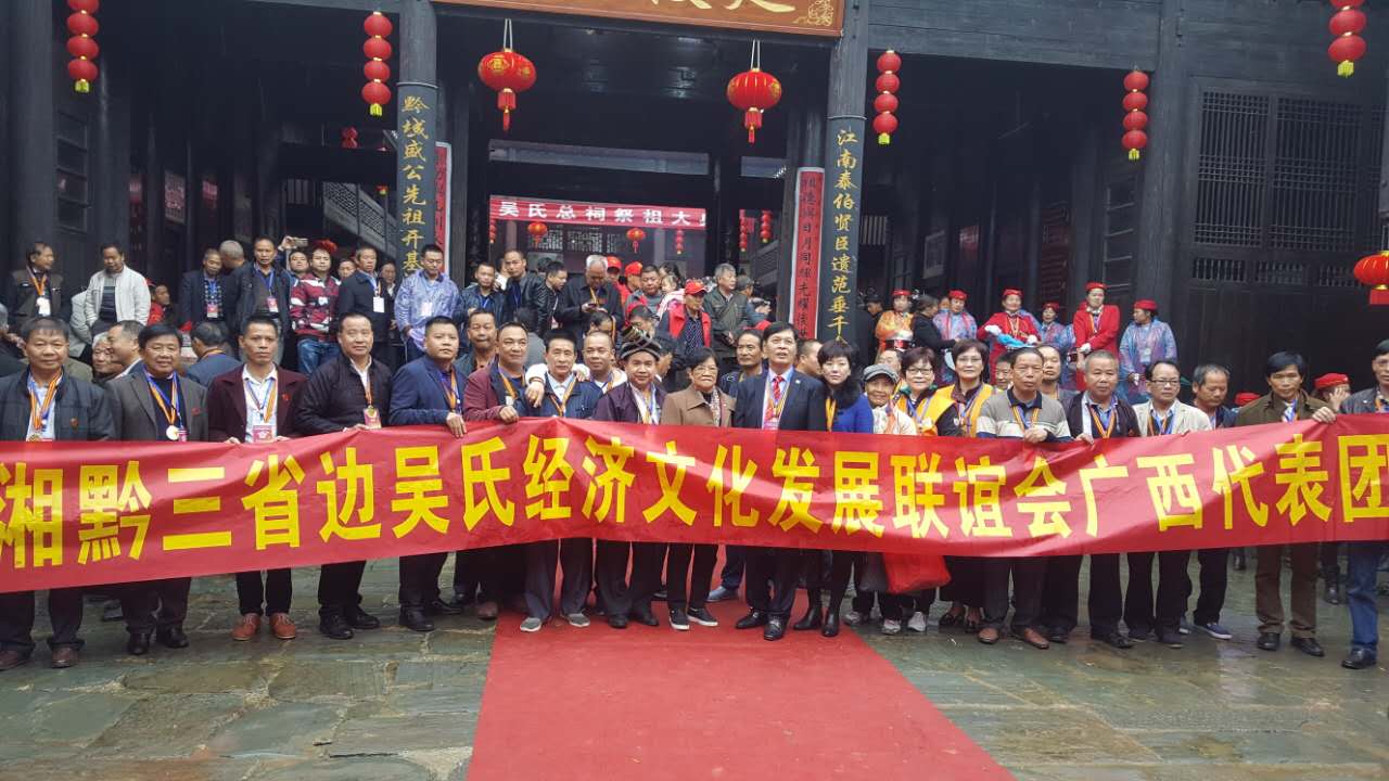 11月11日,贵州省远口(盛公)吴文化节及黔东南三省边广西、湖南、贵州吴文化经济发展(第三届)联谊会圆满结束!参会苗族侗族等吴氏宗亲嘉宾共2000人左右。第二届世界吴氏宗亲总会会长吴良民主席与香港吴氏宗亲总会成、以及原广西吴氏宗亲总会长吴健琴宗姐等海内外参加了本次大会。