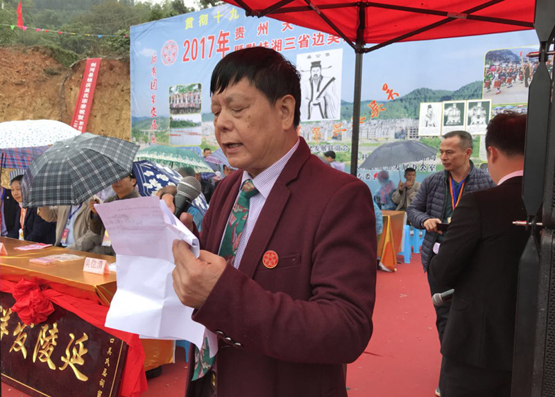 今天在贵州天柱召开吴文化艺术节暨黔桂湘三省边吴氏经济文化发展联谊会年会的召开得到当地党和政府的支持,是一件深得民心的大好事。是传承泰伯至德精神, 弘扬吴氏优秀文化的一个契机, 是加强同全国各地宗亲联系的一个平台。对与各地的经贸联盟,发展吴氏经济文化,振兴家族,实现“十九大”的共同目标,有着重大而深远的意义。