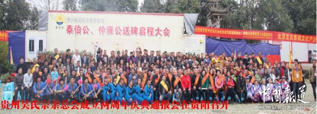 中国报道记者吴蜀丰特约撰稿吴德仙日前,贵州吴氏宗亲总会为泰伯、仲雍公敬立归宗碑总结大会暨贵州吴氏宗亲总会成立两周年、贵州吴氏宗亲文化研究中心成立揭牌庆典通报会在省会贵阳市乌当区举行,到会签到分会、团体、宗亲共486人。