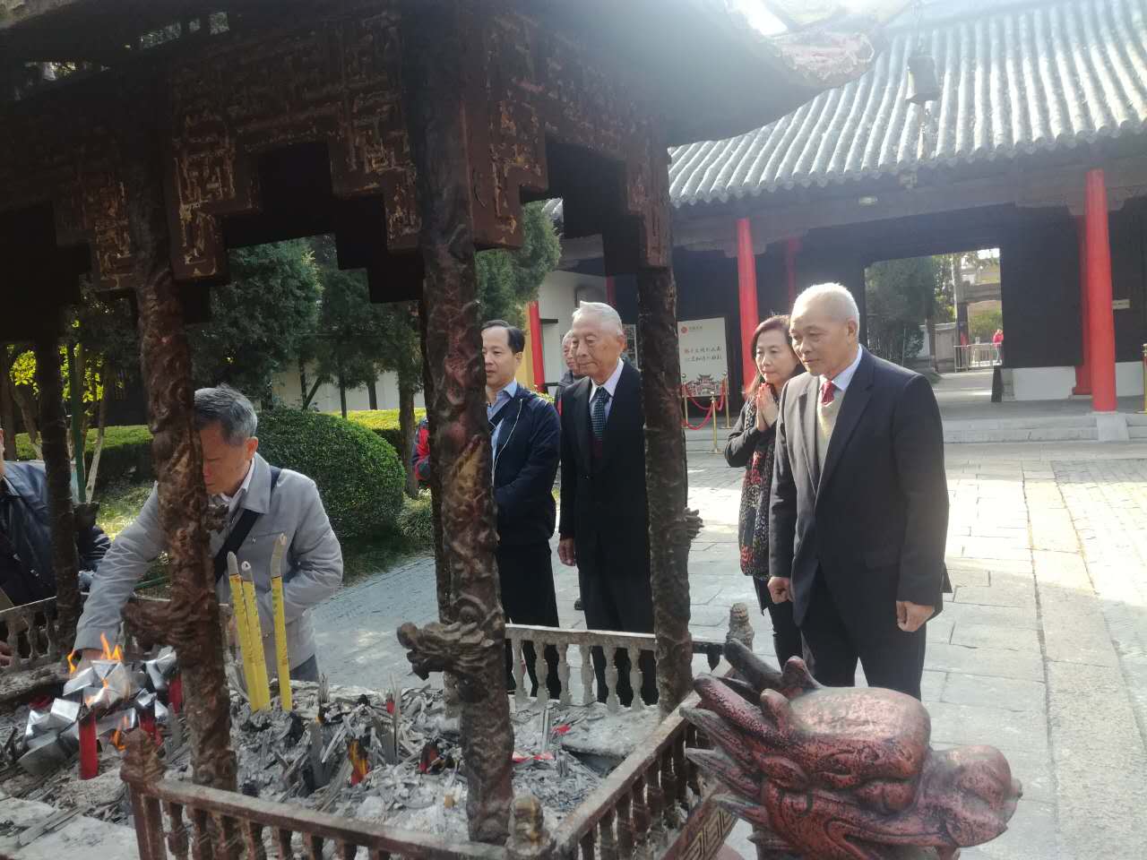 心怀祖念,气候宜人,带着浓浓乡情,2017年11月12日,来自海峡彼岸泰伯104裔孙吴瑞生老先生携子孙及家属数十人,特从台湾和美国抵达江南第一古镇——梅村,前来泰伯庙、泰伯墓拜祭先祖泰伯公。