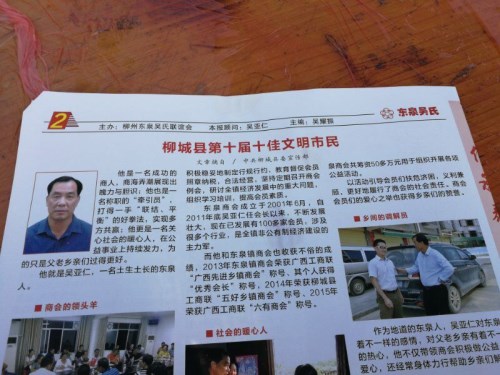 2017年11月26日,东泉吴氏联谊会成立三周年暨第一届吴家宴在柳城县东泉填马鞍山乡隆重召开,出席这次大会的有南宁、柳州、柳城、柳江、鹿寨、融安、融水三江的宗亲代表和社会各界的贤达人士约600多人。充分显示东泉吴氏族人的团结、和睦,兴旺发达的景象,令人感到欣慰和鼓舞。