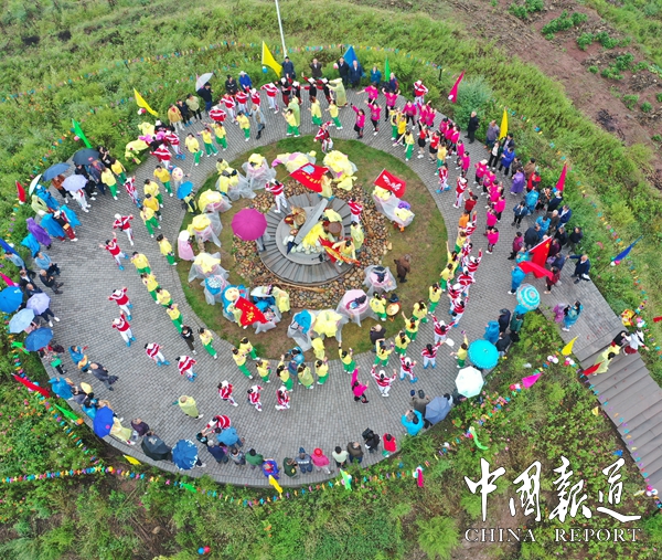 中国报道讯(吴蜀丰通讯员吴陶勇)细雨润无声,一场秋雨虽然不停地下着,却丝毫没有动摇阻挡农民的喜悦之情。9月23日,为庆祝第五个中国农民丰收节,重庆市丰都县境内的民间艺木表演团自发组织前往丰都县北岸十直镇开花寺村、莲花村及树人镇万寿桥村举办庆祝活动。
