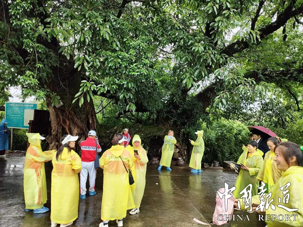 下午13点30分,20多辆表演方队车辆马不停蹄前往五百多年莲花村夫妻树(黄桷树)问世间情为何物,只叫人生死相许。人世间有百年夫妻,可以像痴情青蛙一样相濡以沫、相守到老,可恩爱了五百年的夫妻树,却是闻所未闻。两棵黄桷树相互缠绕依偎在一起,而上方郁郁葱葱的枝叶像伞一样为人们遮风挡雨,也印证了大树底下好乘凉这一说。走进仔细观看,记者目测,两棵黄桷树身高基本相当,约15米,树冠直径8米左右,同时这两棵黄桷树树桩间距约2米,在它们树干距地面约两尺的位置,又横着长出一条树干,将两棵树紧紧连接在一起。
