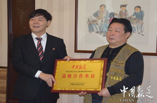 重庆市爱心社区志愿服务指导中心正式与中国报道《魅力城乡》建立战略合作并举行授牌仪式,中国报道《魅力城乡》特聘重庆市爱心社区志愿服务指导中心主任刘崇和为首席媒体顾问,重庆市爱心社区志愿者服务指导中心同时又将中国报道《魅力城乡》作为首席合作媒体并相互授牌合影。