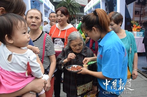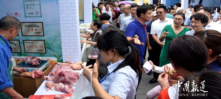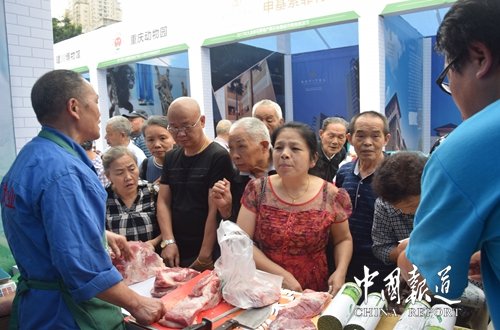 中国报道讯(记者吴蜀丰)为期3天(9月22日至24日)的“2017年九龙坡区房地产展示会暨都市购物旅游节”今日在杨家坪步行街拉开序幕,获“2017年消费者最喜爱的猪肉品牌”殊荣,作为“天生云阳”区域农业品牌代表的重庆奎博无公害桑叶猪肉在杨家坪步行街受广大市民抢购。