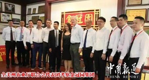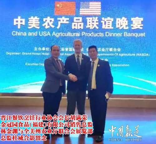 11月10日,全美州农业厅联合会考察团莅临金冠食品(福建)有限公司参观考察,在晋江商务局领导及晋江餐饮协会会长胡满荣,董事长吴文富等有关负责人陪同下,参观金冠园企业生产酱油、醋的发酵流程,天然晒场等,全美州农业厅联合会展览部总监杜威先生对“金冠园”牌酱油、醋是采用东北大豆结合闽南温和气候日晒夜露传统发酵酿造过程发表了高度的评价,并邀请晋江餐饮协会在政府领导组织下,带领餐饮考察团到美国参加2018年全美餐饮行业展盛会。